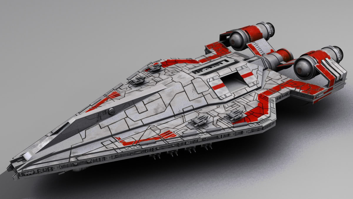 In the early yeas after the reformation of the Antarian Rangers the group found themselves in need of new ships. The group purchased masses of older ships but wanted something iconic. To this end the group contracted Kuat Drive Yards to create a ship just for them. Their requirements were for a powerful warship to become the ship of the line for the organization. Not receiving proper funding to create a completely new design the company instead looked to a cheaper alternative. The Republic-class Cruiser provided a perfect frame and platform for them to start their new project. Kuati Engineers took away hanger space but increased the size of the bay doors, added extra armor to the hull and an upgraded power generator.