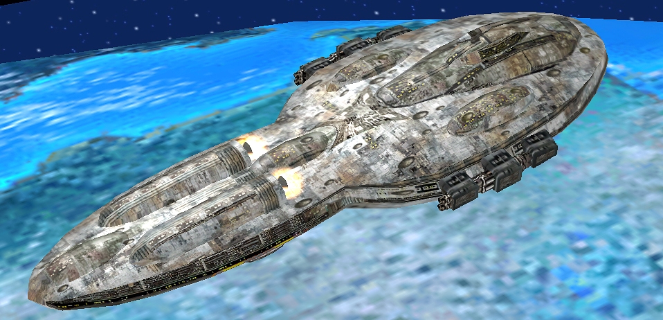 The MC80 Star Cruiser was one of the first designs used by the Rebel Alliance following the Battle of Yavin. MC80 cruisers are warships converted from the older star-liner designs, thus sporting a smaller hangar bay that only provides for three star fighter squadrons. MC80's are no longer available for production because of their age and incompatibility with the shipyards' modern machinery. Conversions from the remaining older designs of star-liners are possible but are not very popular.